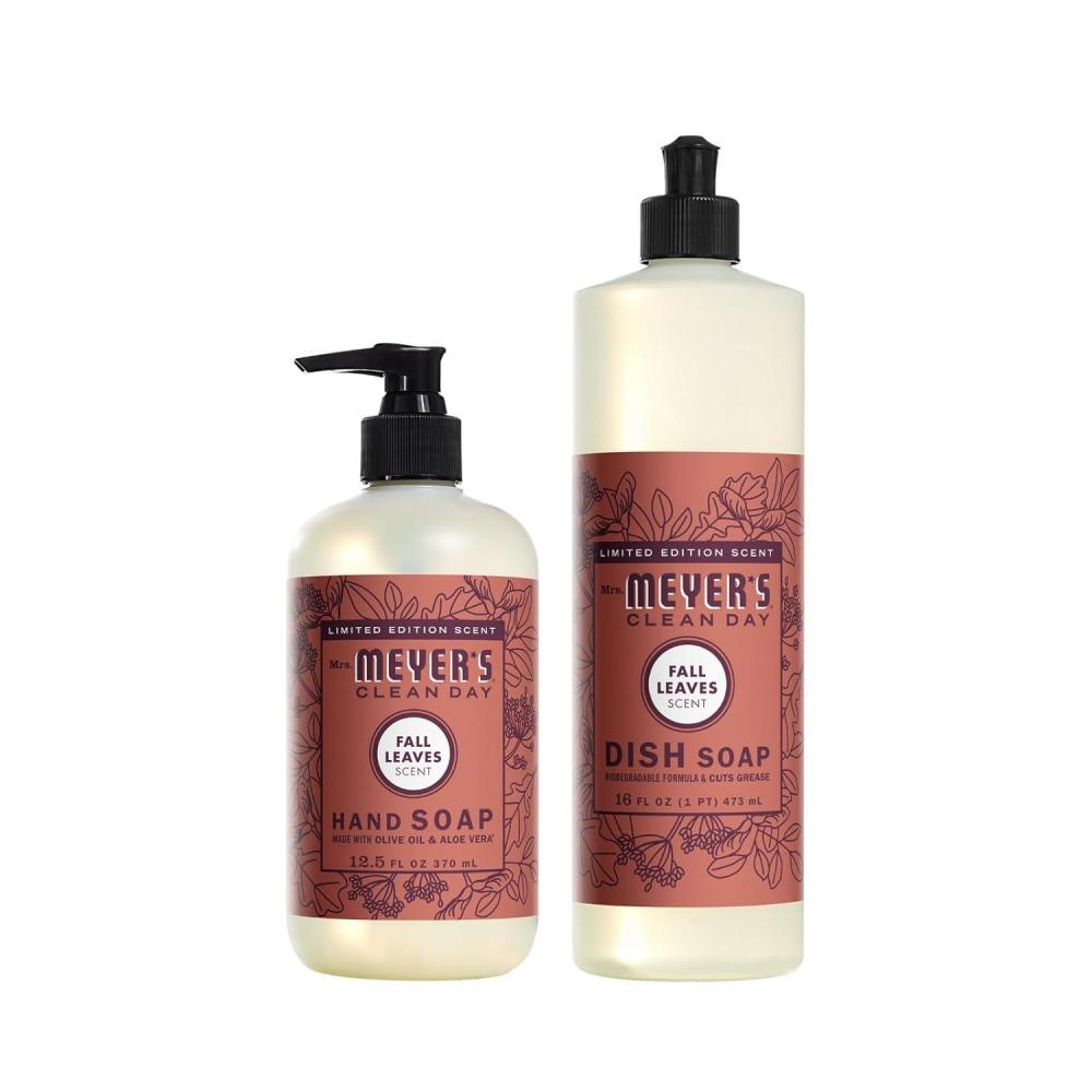 Mrs. MEYER'S CLEAN DAY Variety, 1 Liquid Hand Soap, Snow Drop, 12.5 OZ, 1 Liquid Dish Soap, Snow Drop, 16 OZ, 1 CT(Fall Leaves)